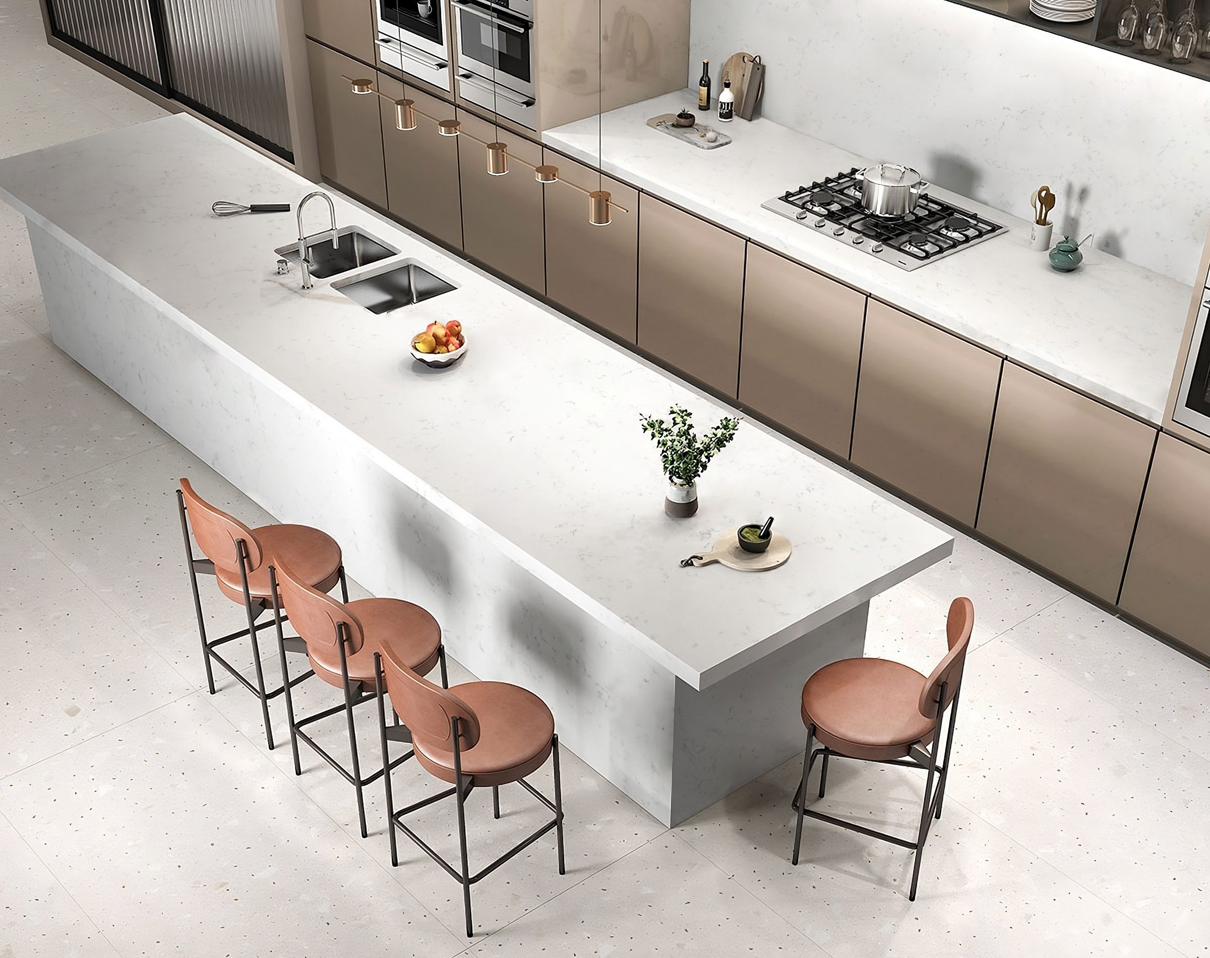 Bianco Venatino has a warm white background with grey Carrara veining that is soft and dispersed.