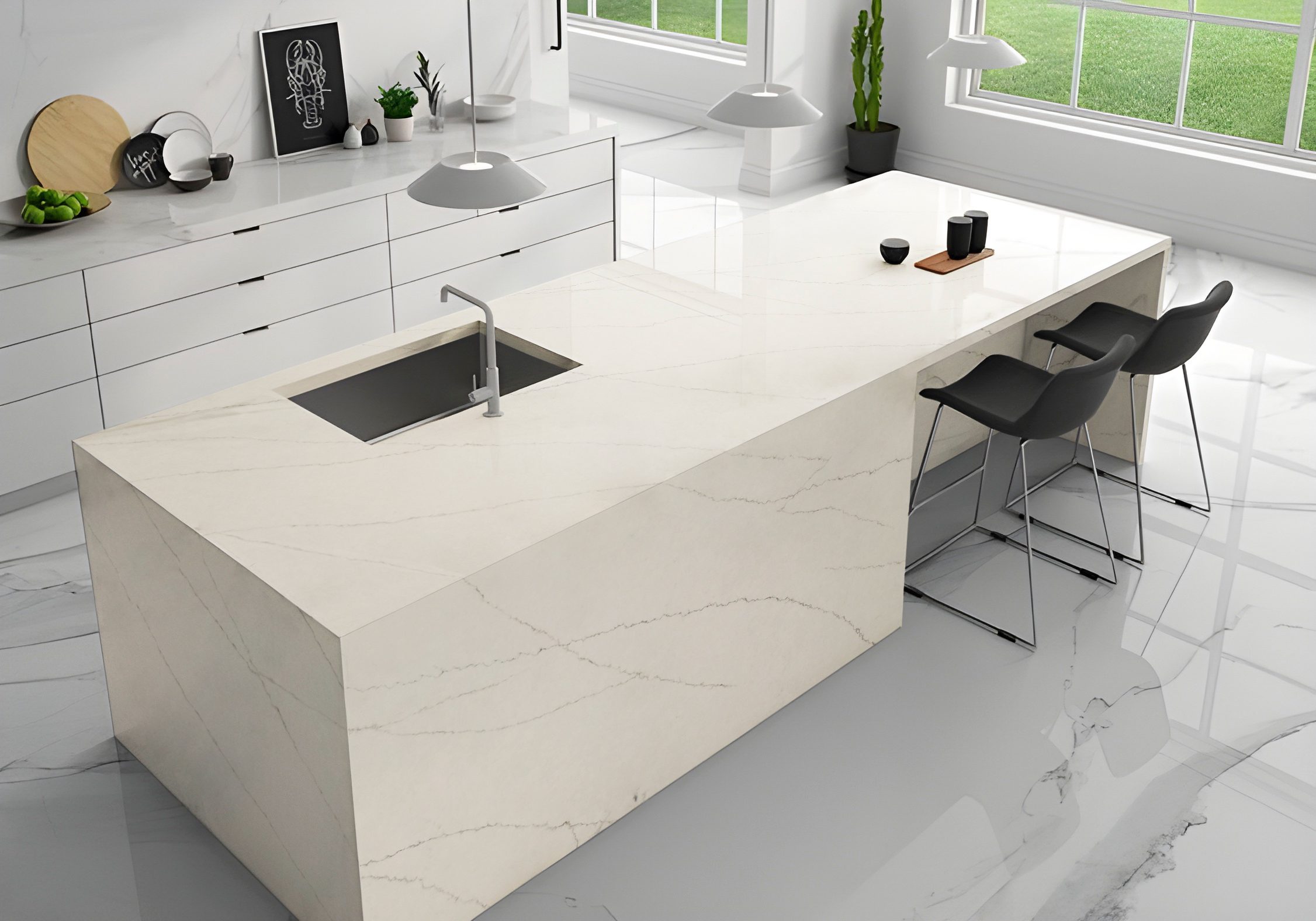 Description Moscato Cream has elegant grey and gold veins on a dual toned background.