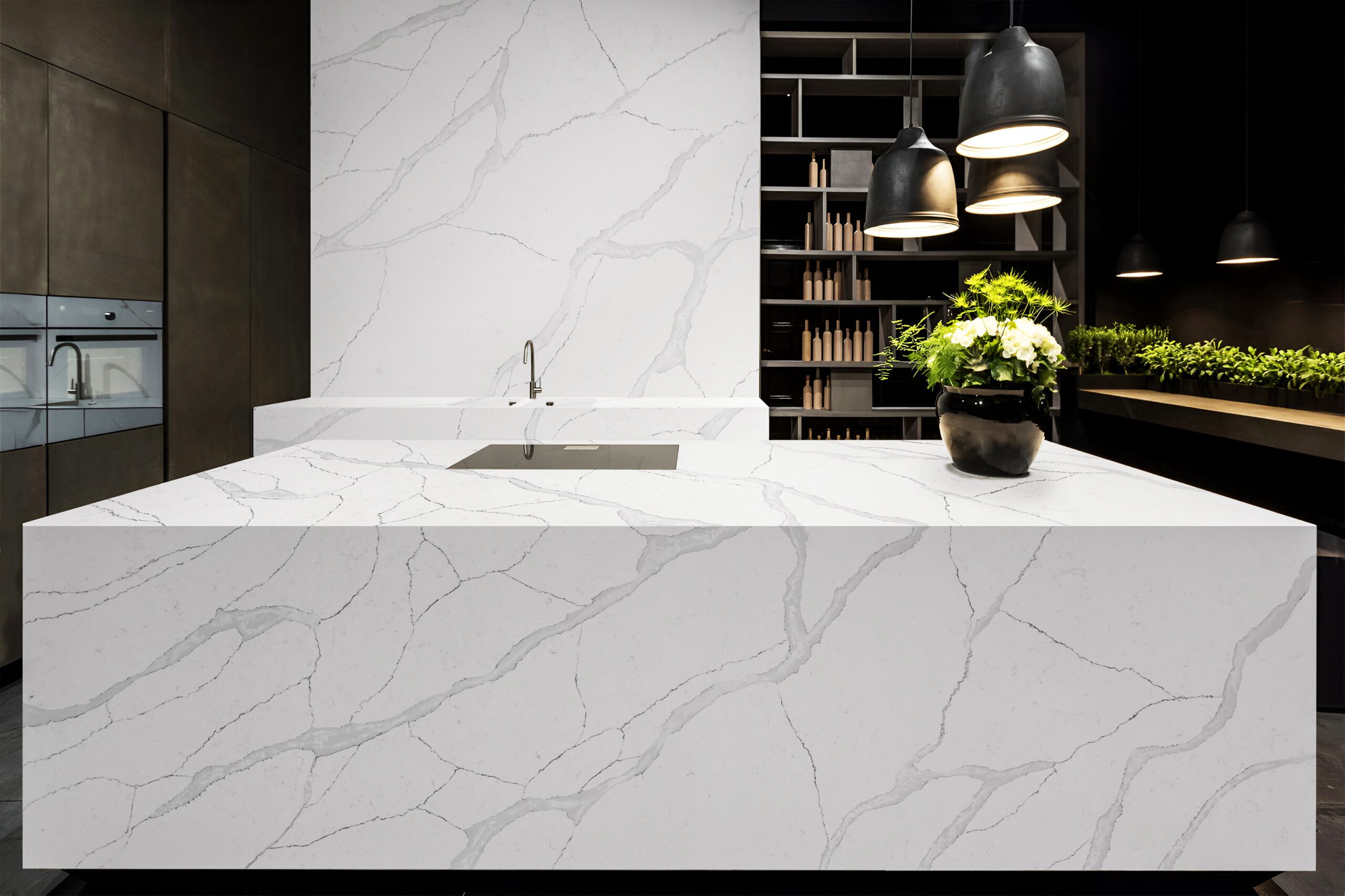 Olympus has beautiful grey veining across the slab with dispersed white detailing that give it a natural and luxurious look.